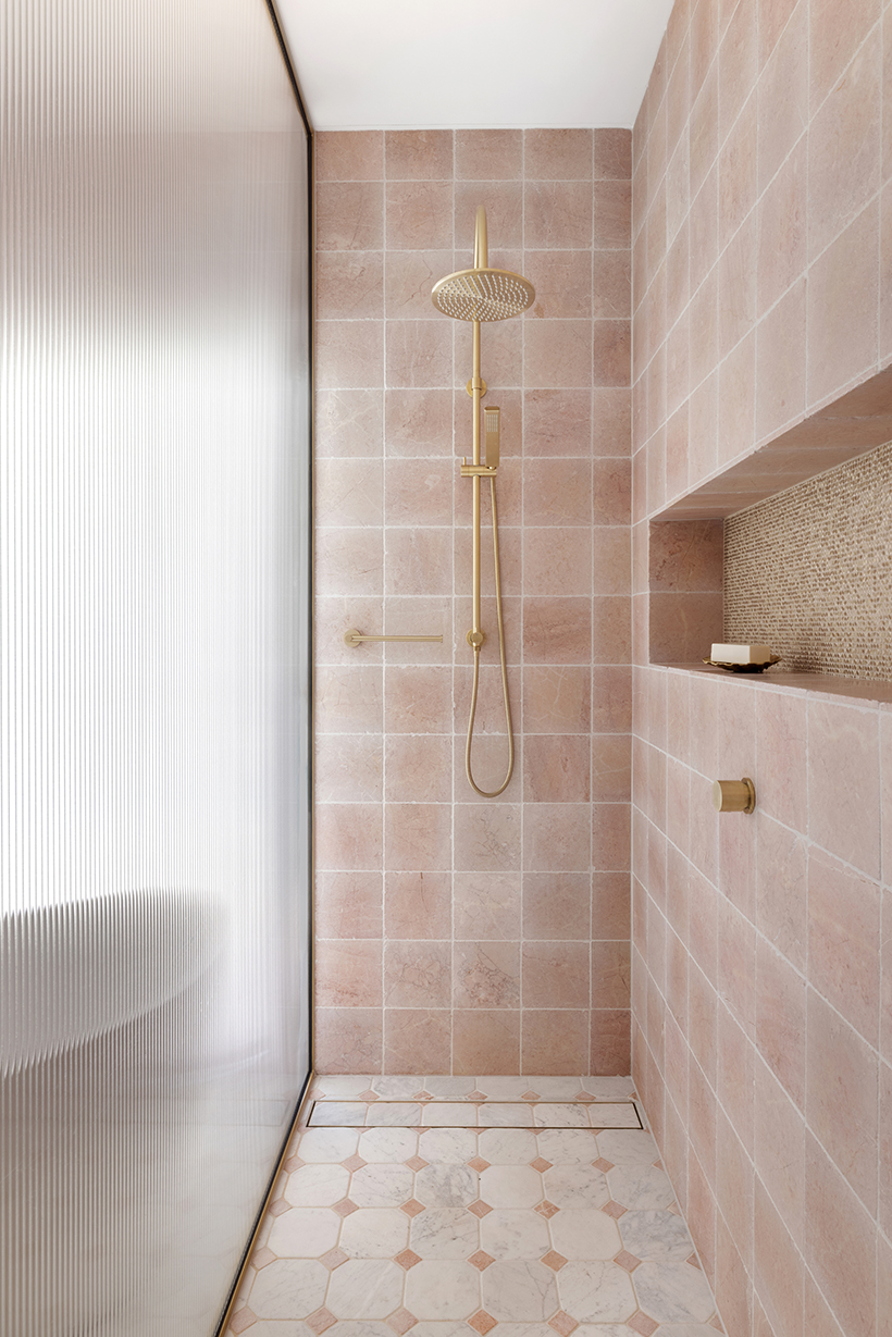 Framed reeded glass doors reveal a sequence of spaces - bedroom, dressing room, and ensuite - each connected through a quiet, cohesive language.